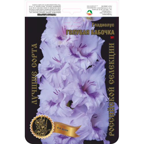 Шедевр Дыбова. Необыкновенно красивый и надежный срезочный сорт. Чисто небесно-голубого цвета с лучистым синим напылением на нижних лепестках. Чемпион на выставках, лучший в своей группе окраски. В соцветии 25 цветков, из них 10-12 одновременно раскрытых, цветок крупный, размер от 11,5 до 14 см. Хорошо размножается, часто цветет из детки.