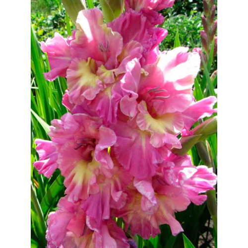 Сорт " мать-героиня": из крупной луковицы до 7 стрелок! Высота 160см. Соцветие 75см,22бутона (8-9 одновременно открыты). Диаметр бутона 14см. Насыщенно-сиреневый с салатным пятном в горле на нижних лепестках. Сильно гофрирован складками -защипами на 2/3 глубины лепестков. Ткани плотные,прочные,устойчивы к солнцу и дождю,чуть искрятся. Пышный, плотный идеально уложенный колос