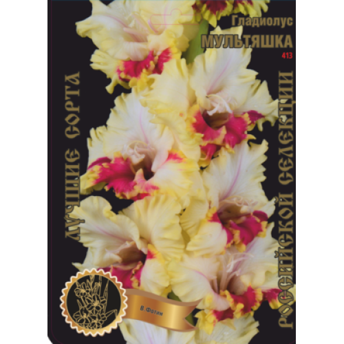 ГЛАДИОЛУС ЯРКОЙ, НЕОБЫЧНОЙ, "ВЕСЕЛОЙ" ОКРАСКИ. ЗОЛОТАЯ ГОФРИРОВАННАЯ КАРМА, БОЛЬШАЯ БРУСНИЧНАЯ "БАБОЧКА" ПОСЕРЕДИНЕ, МАЛИНОВЫЕ СТРЕЛКИ НА БЕЛОМ ФОНЕ