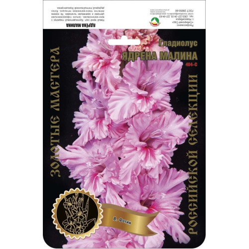 Крупноцветковый гладиолус с ярко-малиновыми, сильно гофрированными цветками и сиреневыми тычинками. На нижнем лепестке темно-малиновое пятнышко. Колос двурядный, плотный высокий. Хорошая срезка.
