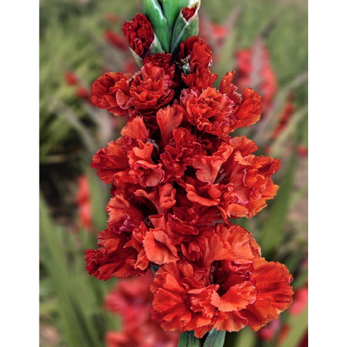 высота растения до 2 м, 21 цветок, 8 открыты одновременно.Цветки крупные, ярко-красные, гофрированные, плотной фактуры. Хорош для срезки
