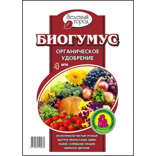 Биогумус- органическое комплексное удобрение, продукт переработки навоза крупного рогатого скота красным калифорнийским дождевым червём. Содержит в сбалансированном сочетании комплекс необходимых питательных веществ и микроэлементов, ферменты, почвенные микроорганизмы, гуминовые вещества, витамины. Это также и микробиологическое удобрение, в нем обитает уникальное сообщество микроорганизмов, создающих почвенное плодородие, не содержит патогенной микрофлоры, яиц и коконов паразитов и вредителей. Биогумус используется как основное органическое удобрение при посадке, подкормке всех видов сельхозкультур, в лесоводстве, цветоводстве. Вносить биогумус в открытый грунт можно с ранней весны и до поздней осени.