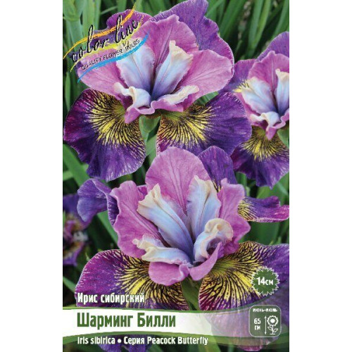 Время цветения: июнь-июль. Осенью наблюдается повторное цветение. Цветки крупные, с розово-фиолетовыми стандартами (три внутренние доли околоцветника, образующие купол) и красно-фиолетовыми фолами (три наружные доли). Кроме того, фолы с темно-фиолетовыми жилками и ярко-желтыми пятнами. Цветоносы с 2-3 цветками