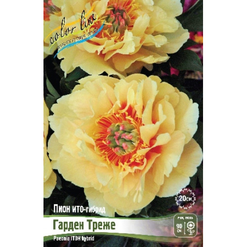 Срок цветения среднепоздний. Цветок диаметром 20 см, полумахровый, ярко-желтый с алым пятном в центре, ароматный. Есть боковые бутоны, стебли прочные