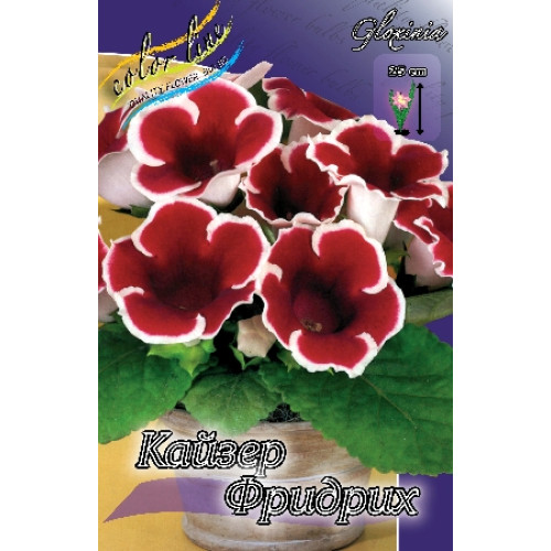 Глоксиния "Кайзер Фридрих" - многолетний, крупноцветковый сорт, выращивается, как комнатное растение. Высота растения 25 сантиметров. Период цветения обильный и продолжительный с мая по июль. Цветок крупного размера, малинового цвета с белым краем. Для посадки выбирают места с ярким рассеянным светом, с легкой и рыхлой почвой, лучше приобрести готовую смесь для сенполий. Полив регулярный в поддон, не допуская переувлажнения почвы и попадания воды на клубень и листья. С конца сентября полив значительно сокращают, затем совсем прекращают поливать. На зиму растение сбрасывает листья и стебли, значит глоксиния нуждается в покое, горшки с глоксиниями нужно убрать в темное и прохладное место для зимовки, хранить при температуре 10°С-15°С, 1 раз в месяц землю слегка увлажнять. Для подкормки глоксиний подойдут комплексные удобрения для цветущих растений.