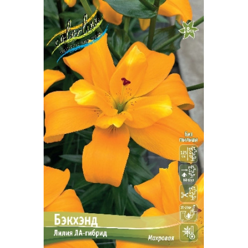 МАХРОВАЯ БЕЗ ПЫЛЬЦЫ, желтая с оранжевым румянцем на кончиках лепестков. Диаметр цветка 16 см, высота 125 см. Цветут в середине лета 2-4 недели