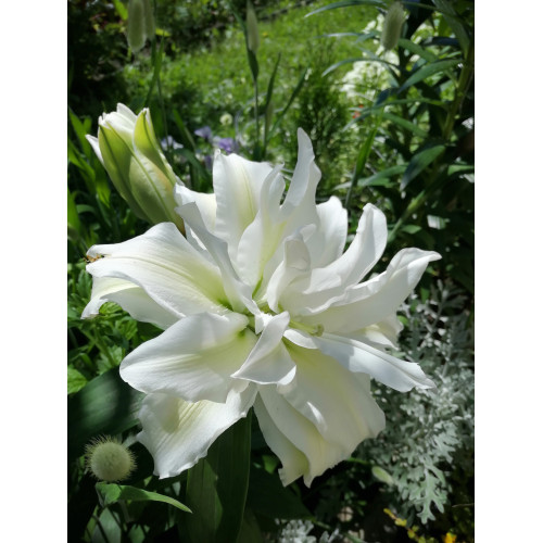 МАХРОВЫЙ, белый с зеленоватыми полосами и гофрир. Лепестками, H-100см