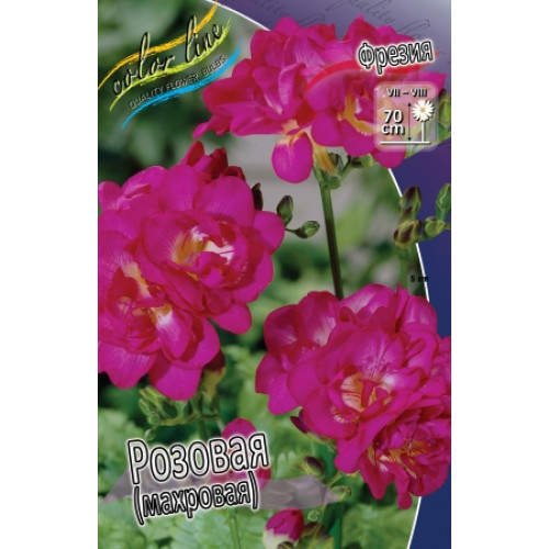 Период цветения махровой розовой фрезии апрель-август, маленькие цветочки собраны в соцветия нежно-розового оттенка. Лепестки изысканной формы, с аккуратно заостренные по краям. Аромат нежный, тонкий, продолжительность цветения 10-12 дней, стебель высотою 25-30 см. Прекрасно сочетается розовая махровая фрезия с другими оттенками весенне-летних цветов, в садах, в горшках и комбинированных цветниках.