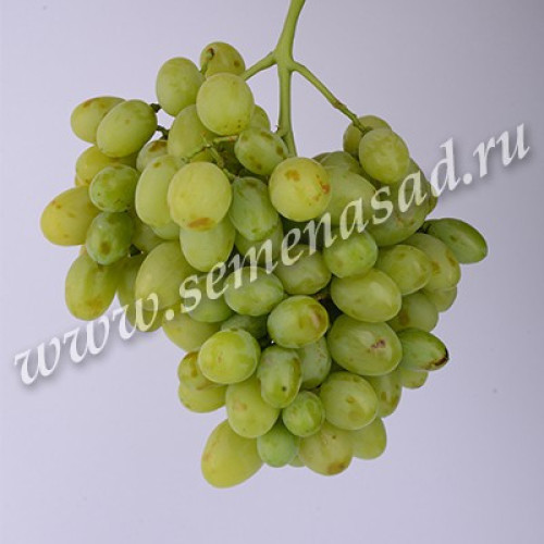 Раннего срока созревания. Кусты выше средней силы роста. Грозди крупные, 600-1100 г, удлиненно-конической формы, средней плотности. Ягоды очень крупные, овальные, средней массой 9-12 г, белые. Мякоть мясистая, кожица плотная, вкус с легким мускатным ароматом. Отличается высокой урожайностью. Вызревание побегов хорошее. Устойчивость к милдью 3,5-4,0 балла, требует обязательного укрытия кустов на зиму.