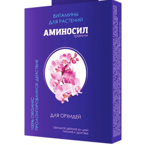 Витамины для орхидей АМИНОСИЛ в гранулах созданы для полноценного сбалансированного питания орхидей, не требует внесения дополнительных подкормок при регулярном применении. Витамины для орхидей в гранулах: обеспечивают активный рост и развитие орхидеи; стимулируют обильное и продолжительное цветение; укрепляют орхидею, защищают корневую систему; формируют сильный естественный иммунитет; повышают стрессоустойчивость; 100% органический состав - безопасны для людей и животных.