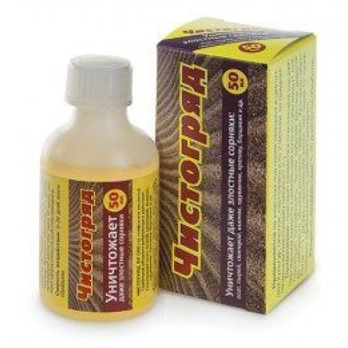 Сплошного действия!Состав-Глофосат.. Препарат, нанесенный на листья, впитывается в них в течение 4–6 ч., а затем распространяется по всему растению, включая корни. 100мл-на 4-6л/воды