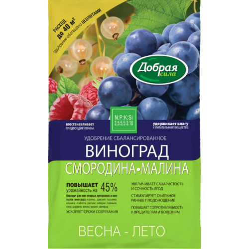 Три основных макроэлемента (NPK): азот (N) – 2,5 %, фосфор (P2O5) – 5,5 %, калий (K2O) – 3 %