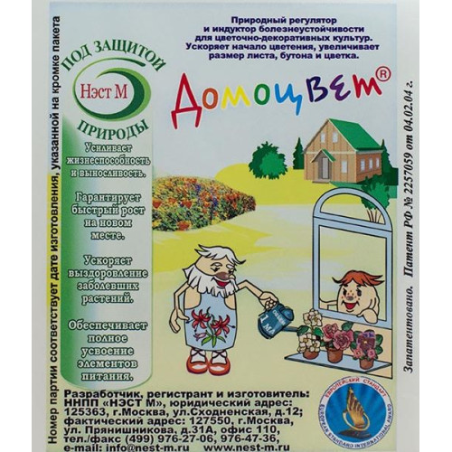Домоцвет - регулятор роста повышающий декоративность однолетних, многолетних, комнатных цветочных культур и крупных многолетних цветочно-декоративных кустарников ( сирень, жасмин, рододендрон, гортензия, миндаль, лапчатка и др.) открытого и защищенного грунта.