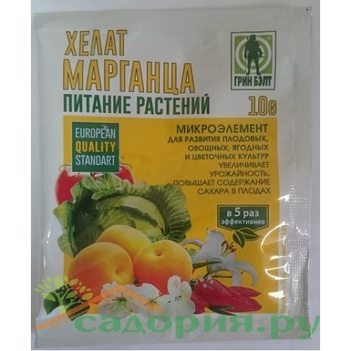 Недостатки марганца у растений вызывает хлорозы, пятнистости, ожоги. Микроудобрение используют для цветочных, плодовых, ягодных и овощных культур.