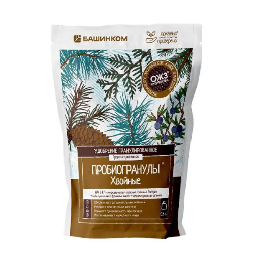 Удобрение гранулированное пролонгированного действия для хвойных. Обеспечивает дополнительным питанием, улучшает декоративные качества, повышает приживаемость при посадке, восстанавливает нормобиоту почвы. Преимущества: Пролонгированное действие. Мягкое сбалансированное питание, идеально подобранное для хвойных растений. Содержит полезные почвенные бактерии. Удобное применение, гранулы не сдуваются ветром. Содержит ферментированную органику Экономичный расход
