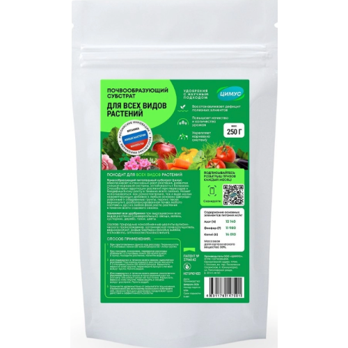 Универсальность заключается в обширных функциональных возможностях почвообразующего субстрата Цимус, который можно купить как удобрение для рассады универсальное и в дальнейшем добавить его в лунку плодово-ягодным культурам или распылить на комнатный цветок. Все 5 видов субстрата нацелены на преобразование почвы в чернозем, который способствует увеличенному урожаю и сокращению созревания. При этом каждое универсальное комплексное удобрение подойдет для любого вида посадки, подкормки, созревания и даже профилактики болезней и стресса во время пикировки.