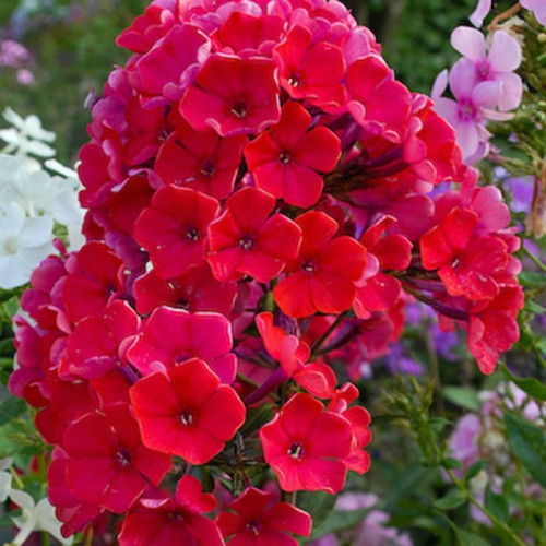 Флокс Juliglut (Джулиглут). Цветок ярко-красный, не выгорает на солнце. Высота куста 80 см.