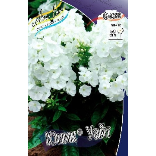 Флокс Younique White (Юник Уайт). Цветок белый. Куст компактный. Соцветия высокие, плотные. Высота куста 40 см.