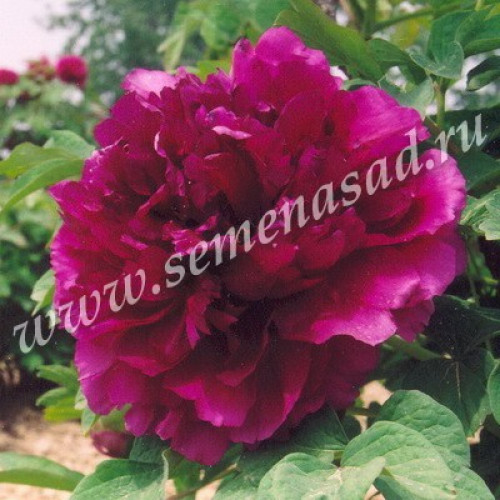 Цветки пурпурно-красного цвета, розовидной формы, 17 см в диаметре. Куст сильнорослый, 120-150 см высотой
