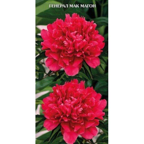 Генерал Мак-Магон - высота растения 85 см. Срок цветения средний. Цветки малиново-красные, яркие, крупные, диаметром до 18 см. На кусте одновременно могут распускаться махровые и полумахровые цветки. Аромат нежный