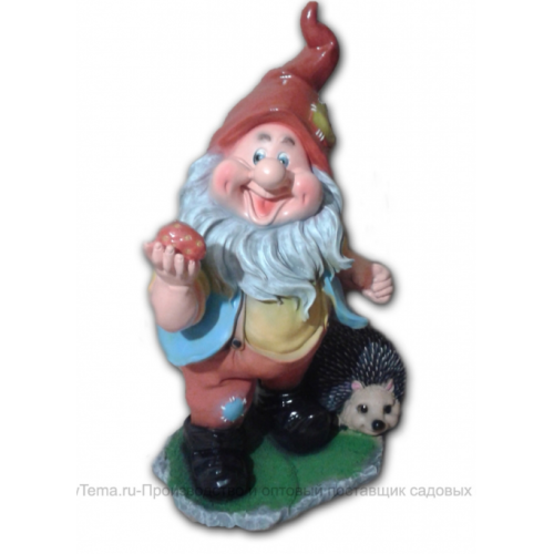 Гном с клубникой и ежом 64х43 см (Полистоун)