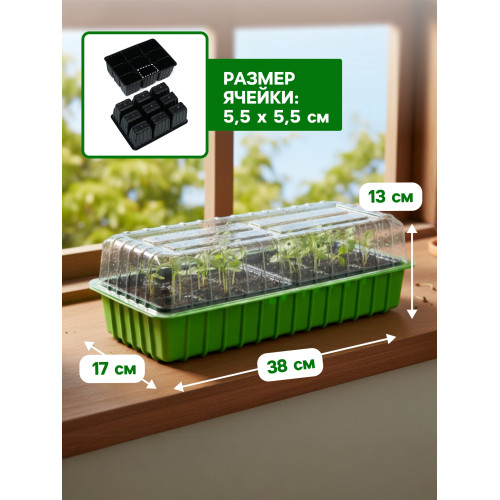 Мини-парник для рассады, 37×16×13 см, 2 вставки, 18 ячеек