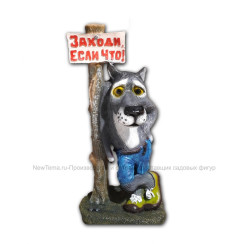 Волк лохматый в кедах под березой с табличкой "Заходи, если ЧТО" 71х31