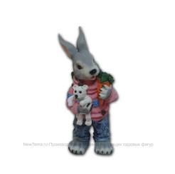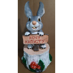 Заяц с табличкой "Хочу капусту" на пеньке - березе 58х32