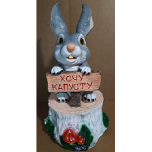 Заяц с табличкой "Хочу капусту" на пеньке - березе 58х32