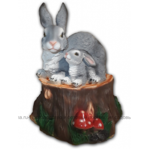 Зайчиха с зайчонком лежачие на пне 44х32 см (Полистоун)