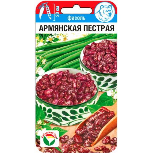 Вкусный и урожайный сорт зерновой фасоли. Яркие красивые зерна декоративно выглядят даже после кулинарной обработки. Среднеспелый (80-90 дней), Кустового типа. Неприхотлив и устойчив к болезням, хорошо растет в открытом грунте, характеризуется отличной урожайностью, высокой питательностью и отличными вкусовыми качествами зерен. Содержит большое количество белка, идеально подходит для домашней кулинарии: приготовления супов, гарниров, рагу и консервирования.