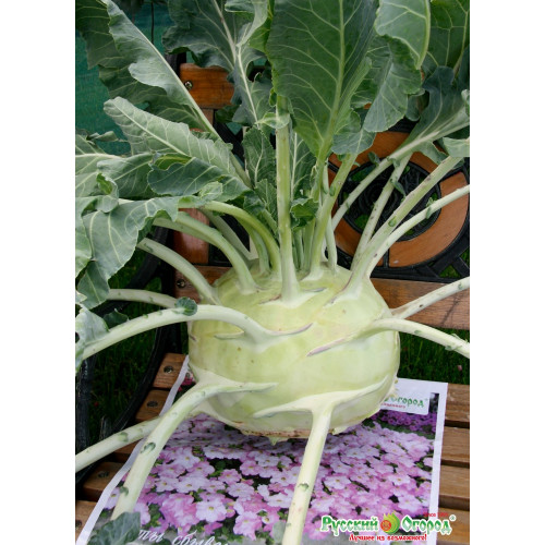 Кольраби размером с голову - это не фантастика! Наш гигант при создании оптимальных условий вырастает до 5 кг! В свежем виде мякоть неизменно сочная и аппетитно хрустящая. При тепловой обработке превращается в нежнейшее низкокалорийное пюре.