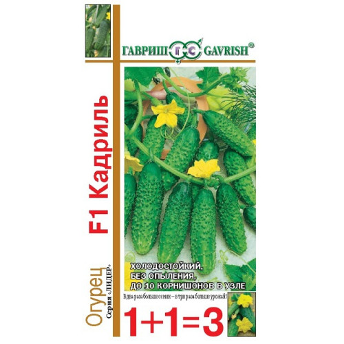 Скороспелый (43-48 дней от всходов до плодоношения) партенокарпический гибрид преимущественно женского типа цветения для выращивания в открытом и защищенном грунте, а также под временными пленочными укрытиями. Зеленец длиной 10-12 см, массой 90-100 г, частобугорчатый, белошипый, очень прочный. Гибрид отличается дружной отдачей урожая благодаря очень большим букетам завязей в узлах на главном побеге (до 8-10 штук). Использование плодов универсальное (в свежем виде, для маринования, засолки). Гибрид относительно устойчив к настоящей и ложной мучнистой росе. Отличительная особенность – холодостойкость. Урожайность одного растения 6,0-7,0 кг.