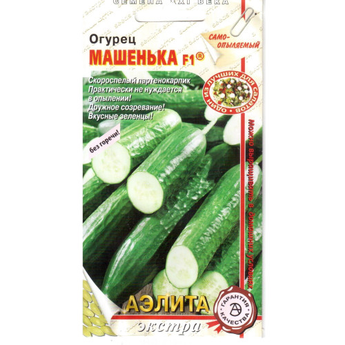 Среднеранний высокоурожайный гибрид нового поколения (созревает на 45-48 день от полных всходов). Дает стабильные урожаи в открытом грунте и под пленкой. Растение среднерослое, преимущественно женского цветения и с букетным типом завязи в узлах (4-6). Плоды маленькие, 6-9 см, среднебугорчатые, белошипые, сладкие, генетически без горечи. При засолке и консервировании остаются плотными и хрустящими. Гибрид обладает повышенной устойчивостью к болезням и стрессовым условиям