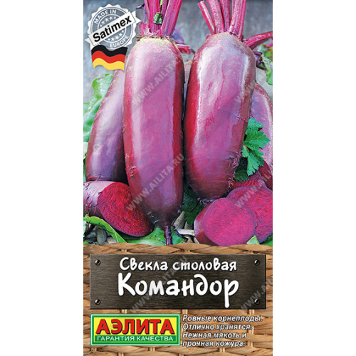 Сорт немецкой селекции (компания Satimex) с цилиндрическим типом корнеплодов. Высоко устойчив к цветушности, очень хорошо хранится. Отличается более выровненными по размеру и форме корнеплодами относительно известного сорта Цилиндра. Среднепоздний: от всходов до сбора урожая 120-135 дней. Масса корнеплодов 200-300 г, при хорошем уходе они вырастают до 500 г. Кожура тонкая, гладкая, но прочная. Мякоть темно-красная, нежная, кольцеватость слабая. Урожайность, товарные и вкусовые качества – великолепные.