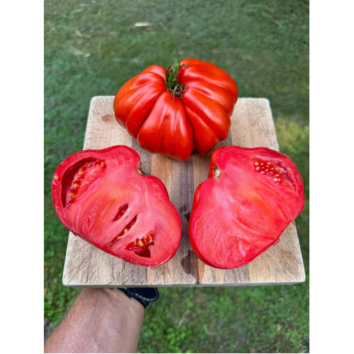 Сорт очень популярный на фермерских рынках итальянского Средиземноморья. Плотные, крупные помидоры с ярко выраженной ребристостью и насыщенным красным тоном. Мякоть мясистая, невероятно сочная, сладкая, почти не содержит семян, то, что надо для превосходной пасты и отличного сока. Растение индетерминантное, урожайное, продолжительного плодоношения. Хорошо адаптируется к погодным условиям