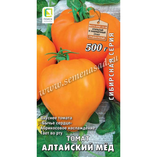 Абрикосовая окраска, вкуснее «Бычьего сердца». Среднеспелый сорт для выращивания в пленочных теплицах. Период от всходов до начала созревания 105-110 дней. Плод сердцевидной формы, слегка ребристый, абрикосово-оранжевой окраски массой 350-500 г (до 800 г), вкус отличный. Для приготовления соков и свежего потребления