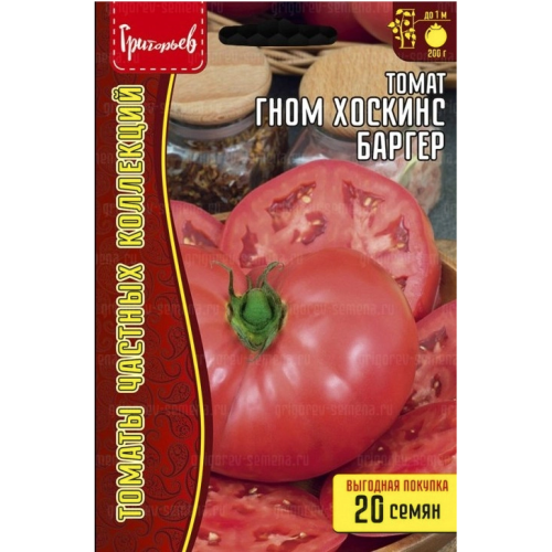 Этот уникальный сорт из серии «Гном томатный» отличается компактным ростом и превосходным вкусом. Детерминантное растение формирует крепкий, но невысокий куст высотой около 90 см. Куст умеренно ветвистый и облиственный, что делает его удобным для выращивания в открытом грунте и теплицах. Плоды крупные, округлой формы, слегка приплюснутые, розово-малинового цвета. Средний вес плодов составляет 150-250 г. Мякоть плотная, сочная, с небольшим количеством семян. Вкус сладкий с легкой кислинкой, аромат насыщенный и богатый. Особенно ценятся за высокие вкусовые качества. При правильном уходе урожайность достигает 3-4 кг с куста. Сорт устойчив к основным заболеваниям томатов и неблагоприятным погодным условиям. Плоды универсальны: подходят для салатов, соусов, сока и консервирования благодаря плотной мякоти. Этот сорт станет отличным выбором для садоводов, ценящих компактные растения с необычными плодами