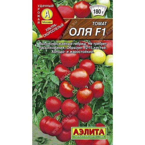 Популярный ультраскороспелый отечественный гибрид для открытого и защищенного грунта. От всходов до плодоношения – 85-95 дней. Гибрид жаро- и холодостойкий, стабильно завязывает плоды в условиях +7°С ночью, +13...+15°С днем, не сбрасывая завязей. Супердетерминантный, не требует пасынкования. Соцветия закладывает группами по три вместо одного. Растения формируют за счет пасынка из-под каждой группы из 3-х соцветий. На кусте высотой 1,2 м образуется 12-15 кистей. Кисть простая, с 7-9 плодами массой 120-180 г. Вкус отличный, томаты сладкие, сочные. Используются в свежем виде и для консервирования. Урожайность высокая, 10-15 кг/м2. Гибрид устойчив к вирусным болезням, кладоспориозу, фузариозу, галловым нематодам. Посев семян на рассаду с обязательной пикировкой в фазе одного-двух настоящих листьев. Растения высаживают в возрасте 45-55 дней, размещая на 1 м2 4-5 шт