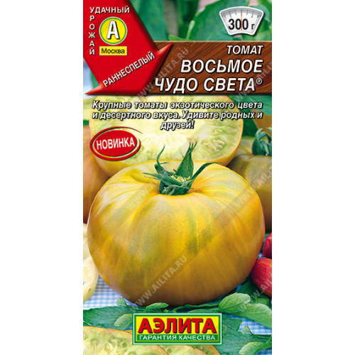 Раннеспелый крупноплодный сорт с превосходным вкусом и неповторимым цветом. От всходов до первого сбора томатов 105-110 дней. В средней полосе рекомендуется для теплиц, в южных регионах – для открытого грунта. Растения индетерминантные, высотой около 150 см. Первое соцветие закладывается над 6-7 листом, последующие- через 1-2 листа. Плоды массой 200-300 г, с очень нежной и невероятно сладкой мякотью изумрудного цвета. В аромате присутствуют фруктовые нотки. Томаты содержат повышенное количество сахара и витамина С, не вызывают аллергии. Их используют не только в салатах и бутербродах, но и как очень вкусный и необычный десерт. Урожайность 9-10 кг/м 2 .