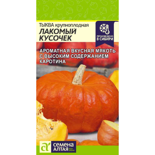Среднепоздний (110-120 дней) высокоурожайный сорт. Растение мощное, длинноплетистое., формирует большие, красно-оранжевые плоды плоскоокруглой формы, средней массой 8-15 кг, Мякоть великолепного вкуса, желто-оранжевая, хрустящая, очень ароматная, с высоким содержанием каротина и сахаров, обладает великолепными питательными и диетическими свойствами. Идеальна для производства соков и детского питания. Используется для различной кулинарной переработки. Плоды хорошо транспортируются и хранятся продолжительное время. Свето- и теплолюбивая культура. Предпочитает плодородные, некислые, хорошо прогреваемые почвы. Лучшие предшественники: картофель, лук, капуста, корнеплодные культуры и бобовые травы. Тыкву не рекомендуется сажать после огурцов, кабачков, патиссонов, чтобы избежать поражения общими болезнями и вредителями. Семена высевают в открытый грунт по 2-3 штуки в лунку, когда почва прогреется до температуры 10-12°С на глубине 10 см и минует угроза возвратных заморозков. Глубина заделки семян 3-5 см, на легких почвах до 7 см. Посадочный интервал не менее 1 м между лунками с междурядьями 1,5 м. Для получения крупных плодов на растении оставляют по 2-4 завязи, а плети прищипывают. Плоды убирают в полной спелости вместе с плодоножкой. В течение вегетации необходимо проводить нечастые, но обильные поливы. Отзывчива на внесение органических удобрений