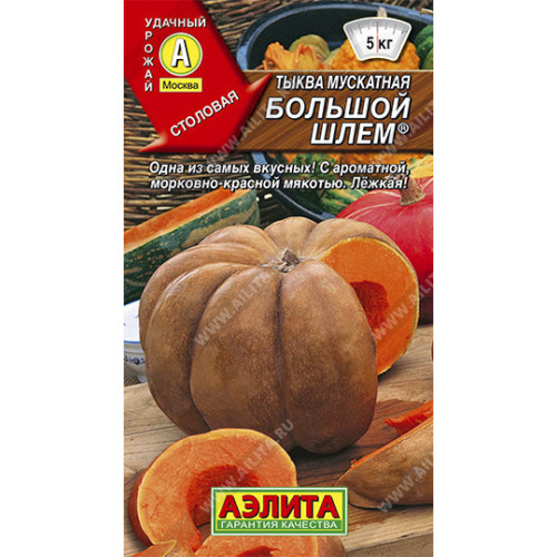 Вкусная тыква столового и диетического назначения. Сорт среднепоздний, формирует урожай примерно за 120 дней от всходов. Растения среднеплетистые, засухоустойчивые; на каждом вызревает 2-4 плоскоокруглых плода с сегментированной поверхностью, массой 4-5 кг. Кожура оранжево-коричневая, кожистая, с восковым налетом; режется легко. Семенное гнездо небольшое. Мякоть морковно-красная, ароматная, хрустящая, с высоким содержанием сахаров, каротина, пектиновых веществ, полезных микроэлементов. Кулинарное использование неограниченное – в сыром, вареном, жареном, печеном, тушеном виде; приготовление сока, пюре, повидла, цукатов. Плоды лежкие, хранятся 4-5 месяцев без потери качества.