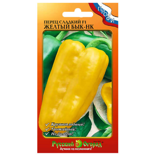 Ранний, урожайный, с гигантскими плодами! Удлиненный плод высотой 20 см и 9 см в диаметре достигает массы 200 г! Техническая спелость наступает через 95 дней после всходов. Состоит из 3-4 долей. Окраска спелого плода с мясистыми стенками толщиной 7-8 мм золотисто-желтая. Высокорослые растения подходят для выращивания в открытом и закрытом грунте. Гибрид устойчив к вирусу табачной мозаики. Выращивается в открытом и закрытом грунте. Урожайность в продленном обороте зависит от условий выращивания и составляет от 7-9 кг/м.кв., до 12-14 кг/м.кв