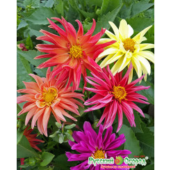 Яркая смесь из кактусовидных георгин. Растения высотой око..