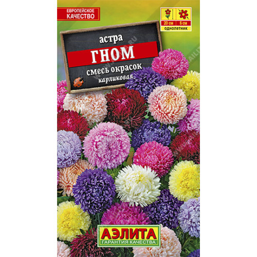Серия астр ГНОМ – одна из лучших по обилию и продолжительности цветения. Кусты шаровидные, ветвистые, высотой до 20 см, усыпаны густомахровыми соцветиями Ø5-7 см с июля до заморозков. Астры холодостойкие, светолюбивые (но выносят легкую полутень), не терпят сырых, переувлажненных почв. Сохраняют свою декоративность под воздействием дождя и ветра. Отлично подходят для выращивания в горшках и балконных ящиках, используются для посадки на клумбы, в цветники и рабатки.