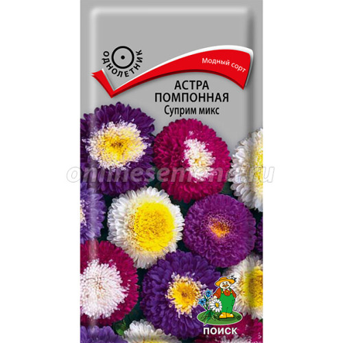 Прекрасная смесь веселых астр! Компактное ветвистое растение высотой до 50 см. Соцветия плоскоокруглые разноцветные с бело-желтым центром. Одновременно на растении до 30 соцветий! Используют очень широко: для посадки в сборные цветники группами, на рабатки рядами и на срезку.