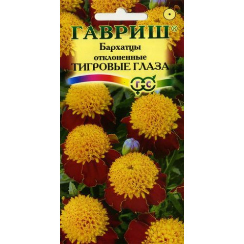 Однолетнее растение семейства Сложноцветные. Стебли прямостоячие до 25 см высотой, сильно ветвистые от основания, боковые побеги отклоненные. Соцветия-корзинки 6 см в диаметре, оригинальной формы. Одновременно открывается до 35 соцветий. В открытый грунт можно высевать в конце мая - начале июня. Всходы появляются на 5-10 день. Почву желательно накрыть нетканым материалом (акрил, лутрасил). В этом случае сеять можно на неделю-полторы раньше обычных сроков и тем самым ускорить цветение. На рассаду сеют в начале апреля. Цветение начнется в июне. Бархатцы, высаженные рядом с огородными культурами уменьшают их поражение грибными заболеваниями, особенно фузариозом, защищают от некоторых видов нематод. Бархатцы используют во всех видах цветников. Они хорошо растут в горшках, вазонах, балконных ящиках, в сочетании с примулами и цинерариями. Осенью цветущие растения можно перенести в комнату, где они прекрасно растут в течение всей зимы, а весной, высаженные в открытый грунт, образуют большой цветущий куст.