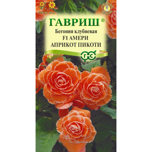 Единственный уникальный гибрид среди бегоний с феноменально огромными цветками 15 см в диаметре! Роскошные густомахровые соцветия насыщенного абрикосово-оранжевого окраса с нежно-белой каймой по краю уютно устроились на сочных темно-зеленых листьях. Нарядными ажурными цветочками в открытом грунте можно любоваться все лето, а в горшках — с апреля по ноябрь. Мощные ветвистые кустики высотой 35-50 см и шириной 40-60 см будут смотреться восхитительно на балконах и террасах или на клумбах. Бегония предпочитает светлые места и умеренный полив, не выносит тень и обжигающие солнечные лучи. Выращивают семенным способом. Посевы производят в конце декабря-начале марта, не заделывая, в неглубокие плошки или ящики с просеянной смесью листовой земли, торфа и песка (2:1:1), накрывают стеклом и до первой пикировки равномерно увлажняют теплой водой с поддона. Пикируют в стадии 2-3 настоящих листочков. Бегонии безболезненно переносят пересадку в любом возрасте. После отцветания бегонии подготавливают к зимнему покою, понемногу уменьшая полив. Наземные части растений отмирают (либо их обрезают). Клубни можно сохранить до следующего сезона в горшке при температуре не выше +10°C, лишь изредка увлажняя почву. Красота и яркость этих удивительных цветов покоряет с первого взгляда и, однажды посадив, многие оставляют бегонию в саду навсегда