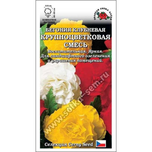 Превосходная смесь крупноцветковых бегоний с густомахровыми камелиевидными цветками. Растение высотой 30-35 см с мощными побегами. Оптимальна для выращивания в полутени, но в условиях обильного и регулярного полива можно выращивать на открытых солнечных участках. Цветение обильное и продолжительное. Растение образует крупные клубни, которые можно сохранять до следующего сезона. Её яркие густомахровые цветы отлично украсят вазоны в Вашем саду или подоконник в доме
