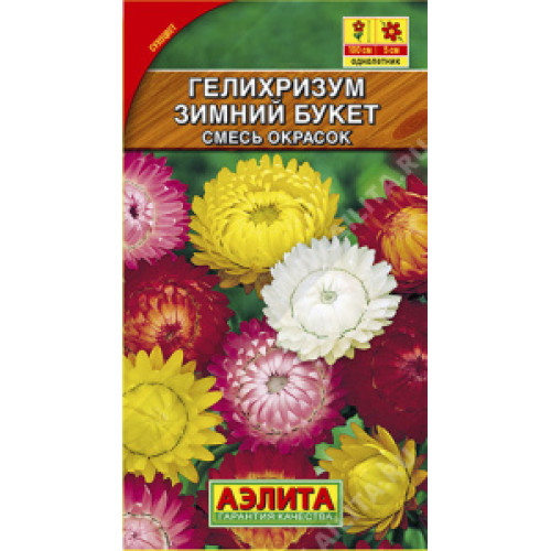 Эффектная смесь высокорослых (100 см) гелихризумов. Яркие махровые соцветия-корзинки Ø5-6 см с жесткими, пленчатыми лепестками традиционно используются в сухих букетах. Растения неприхотливые – холодостойкие, засухоустойчивые, практически не требуют ухода. Обильно цветут с июля по октябрь. Отлично смотрятся в среднем ярусе миксбордера и моногруппами. Для зимних букетов соцветия срезают в полуроспуске, с закрытой серединкой и сушат вниз головками в тени.